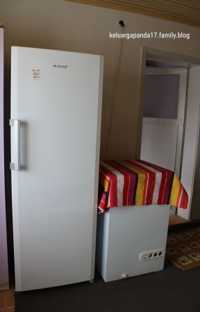 Untuk kebutuhan lemari pendingin, ada 3, 1 ukuran besar untuk menyimpan bahan makanan sehari hari, dan 2 lagi jenis freezer besar dan kecil, fungsinya untuk menyimpan segala makanan beku, daging, sayur, dan untuk menyimpan stok mentega, keju buatan rumahan, ibu mertua pandai membuat mentega dan keju sendiri, apalagi hidup di negara 4 musim, memiliki stok makanan selama musim dingin ketika aktivitas bertani terhenti menjadi kebutuhan penting.