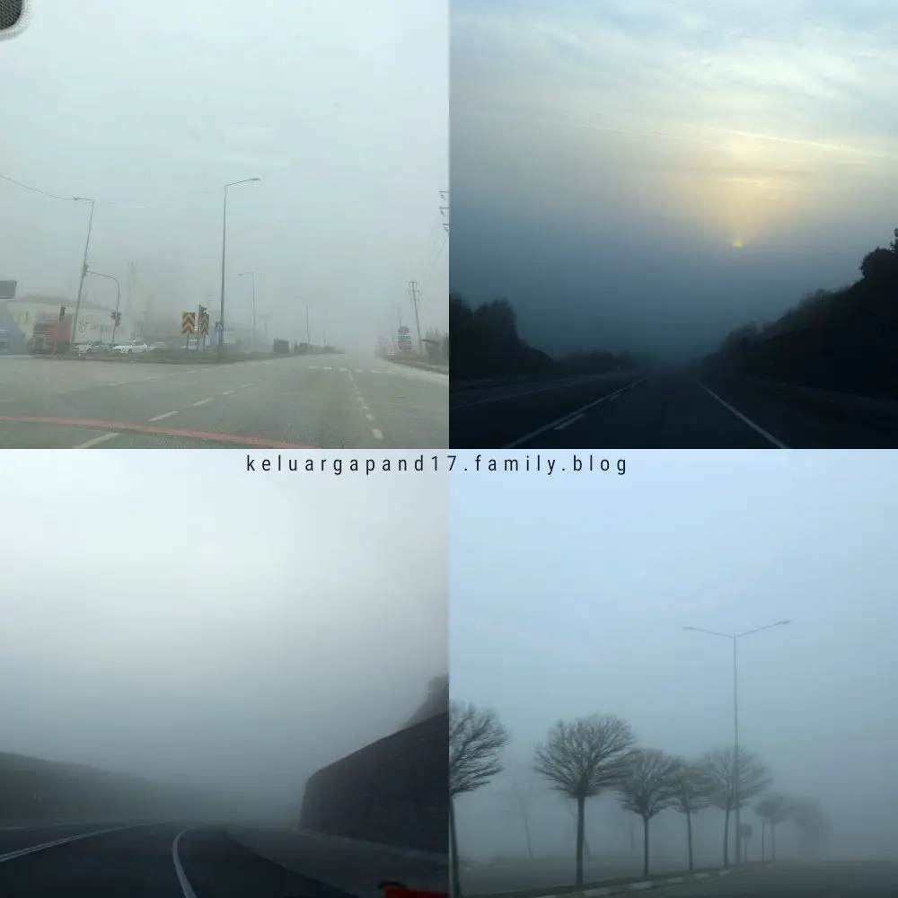 Tapi ternyata!! ditengah perjalanan, kabut mulai turun dan cukup tebal. Suami sampai menyalakan lampu depan dan mobil melaju hati-hati, cukup membuat saya deg-degan. Pikiran buruk sempat terlintas ”Allah korusun” banyak berdoa saja selama di perjalanan.