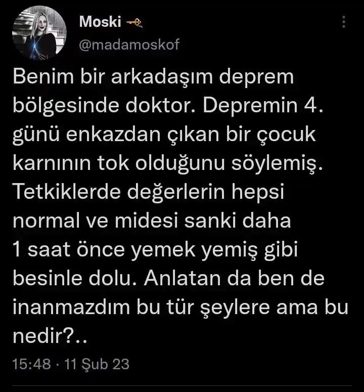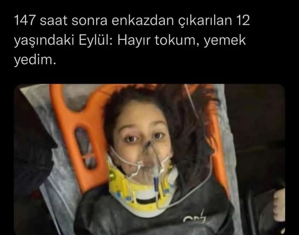 147 jam tertimbun reruntuhan, ketika dia diselamatkan ditanya, apakah dia lapar? dia bilang ”tidak, perutnya sudah kenyang, sudah makan”.