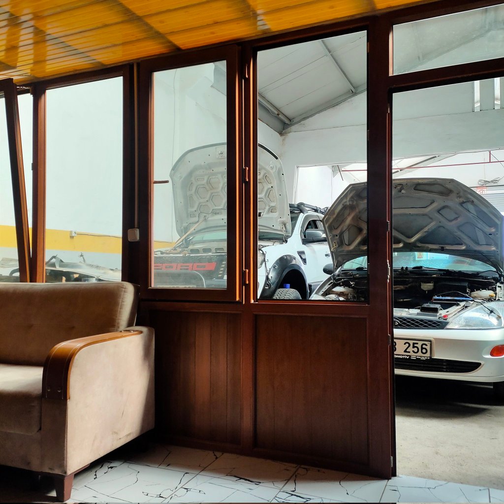 Dia paham, emosi saya lagi jelek. Kemudian menawarkan saya untuk ikut pergi ke sanayi-komplek perbengkelan, menemani ganti oli. Sambil menunggu mobil di service, ditawarkan segelas teh hangat oleh montirnya, Hal yang umum disini sebagai bagian budaya masyarakat, Minum teh kapanpun dimanapun. Sementara saya duduk di ruangan pemilik Bengkel, suami memantau di luar beserta montir.